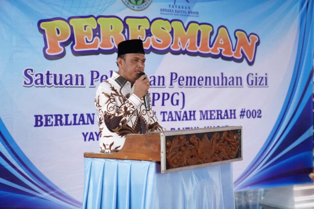 SAMBUTAN: Ketua Mitra SPPG Berlian Pettong Tanah Merah, Ach. Mosoddik (foto: humas)