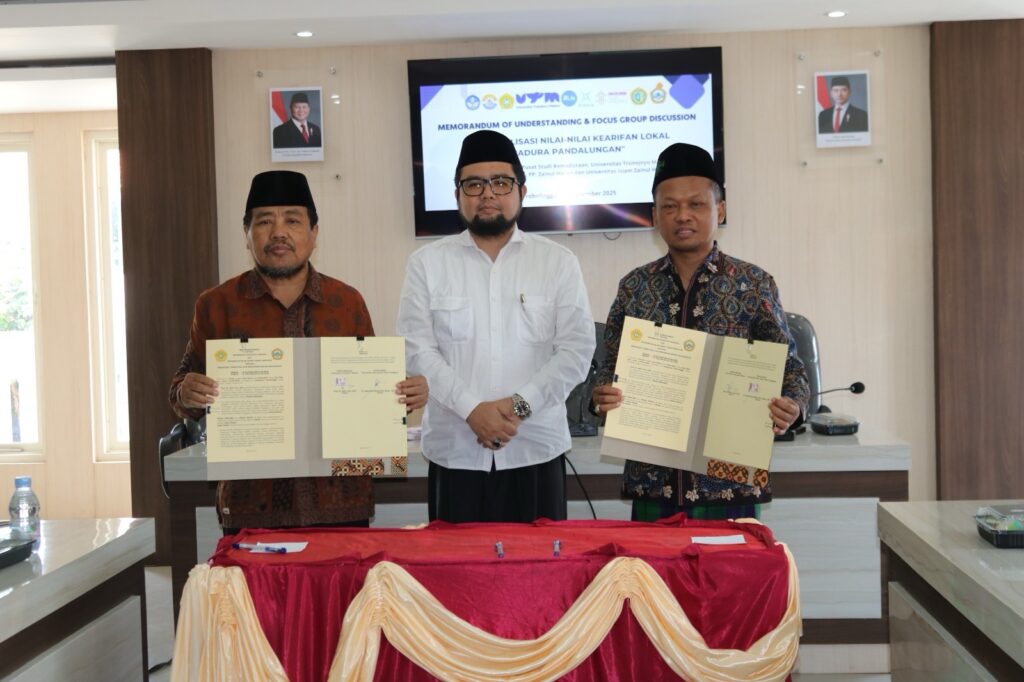 Kolaborasi ini ditandai dengan penandatanganan Nota Kesepahaman (MoU) dan Perjanjian Kerja Sama (PKS) yang dikemas dalam Focus Group Discussion bertema “Reaktualisasi Nilai-Nilai Kearifan Lokal Madura Pandalungan” di Kampus UNZAH, Probolinggo, Senin (15/9/2025).