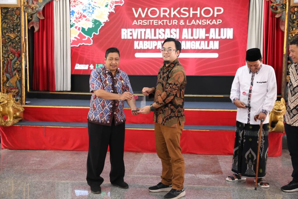 Arsitek Fafan Triavandi, dari IAI Jatim memberikan cenderamata kepada Sekda Pemkab Bangkalan (foto: rusdi/PM)