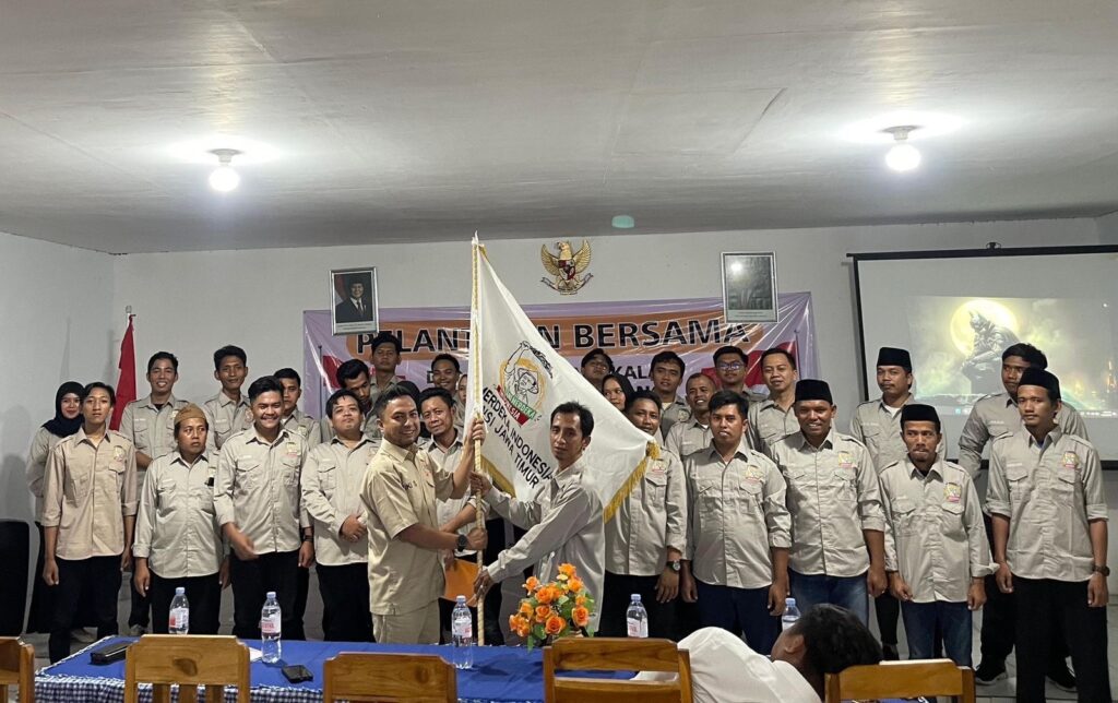 Ketua DPD Tani Merdeka Bangkalan, Wardi (kanan) menerima bendera pataka saat dilantik (foto: rusdi/PM)