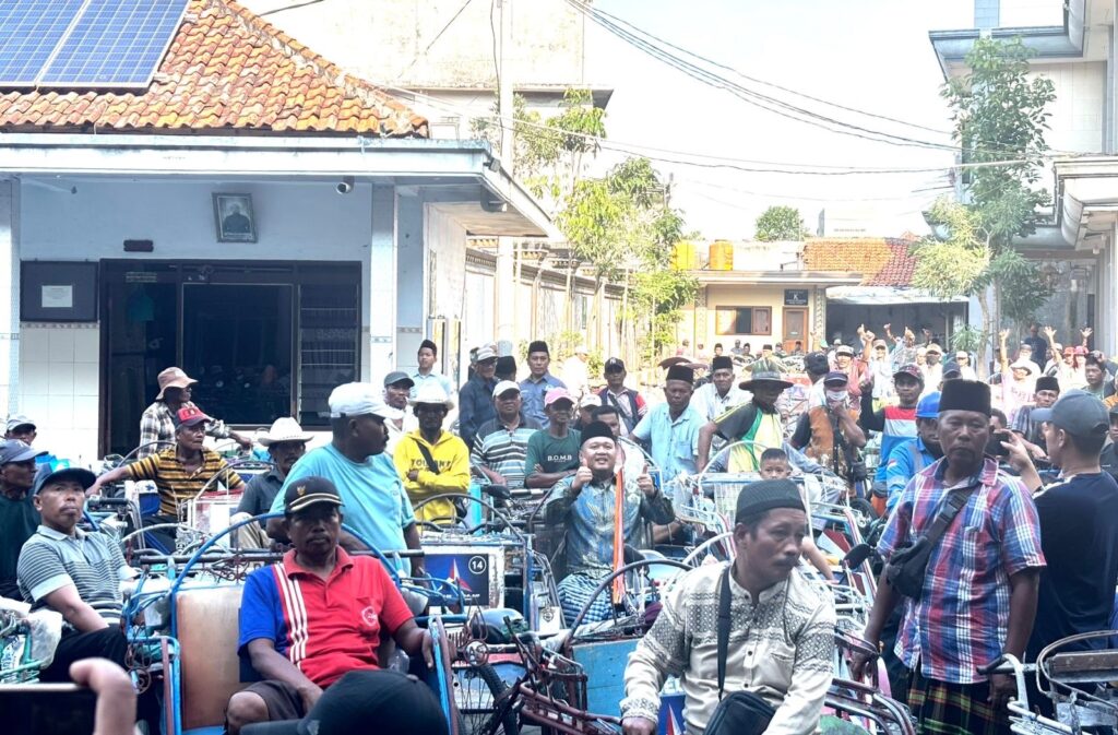 BANGKALAN – Ratusan tukang becak di Kabupaten Bangkalan menerima bantuan paket sembako dari anggota DPR RI Fraksi Partai Demokrat, Hasani Bin Zuber.