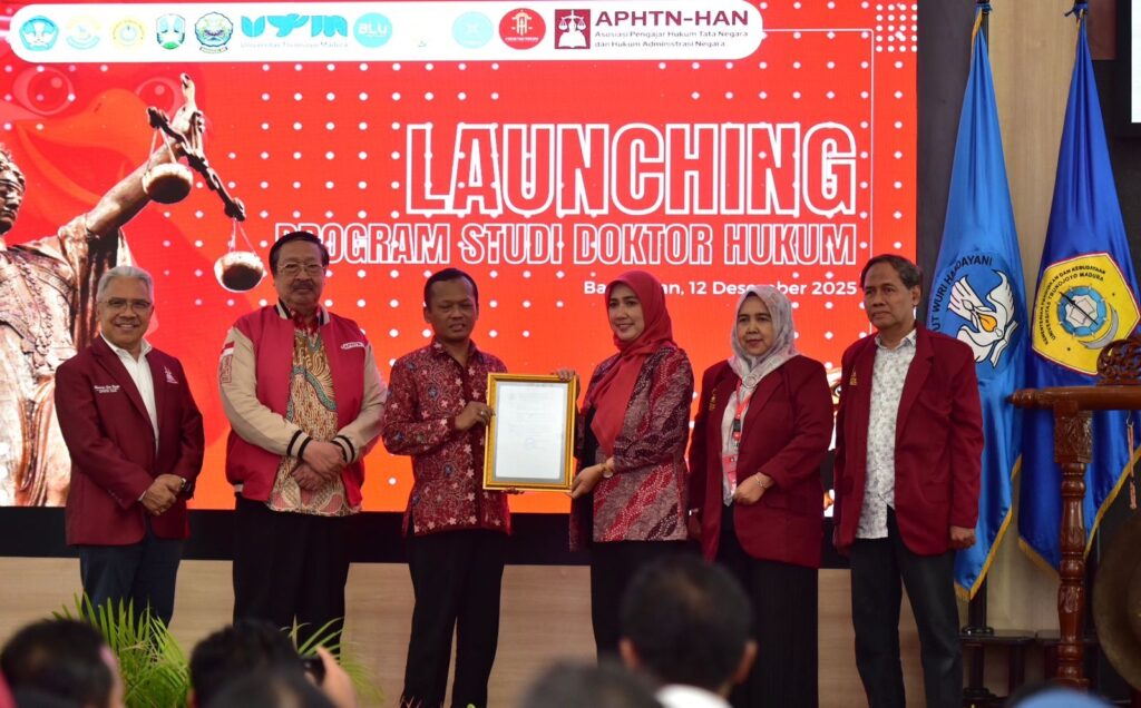 UTM resmi melaunching Program Studi Doktor (S3) Ilmu Hukum, bertempat di Aula Syaikhona Muhammad Kholil, Jumat (12/12/2025).
